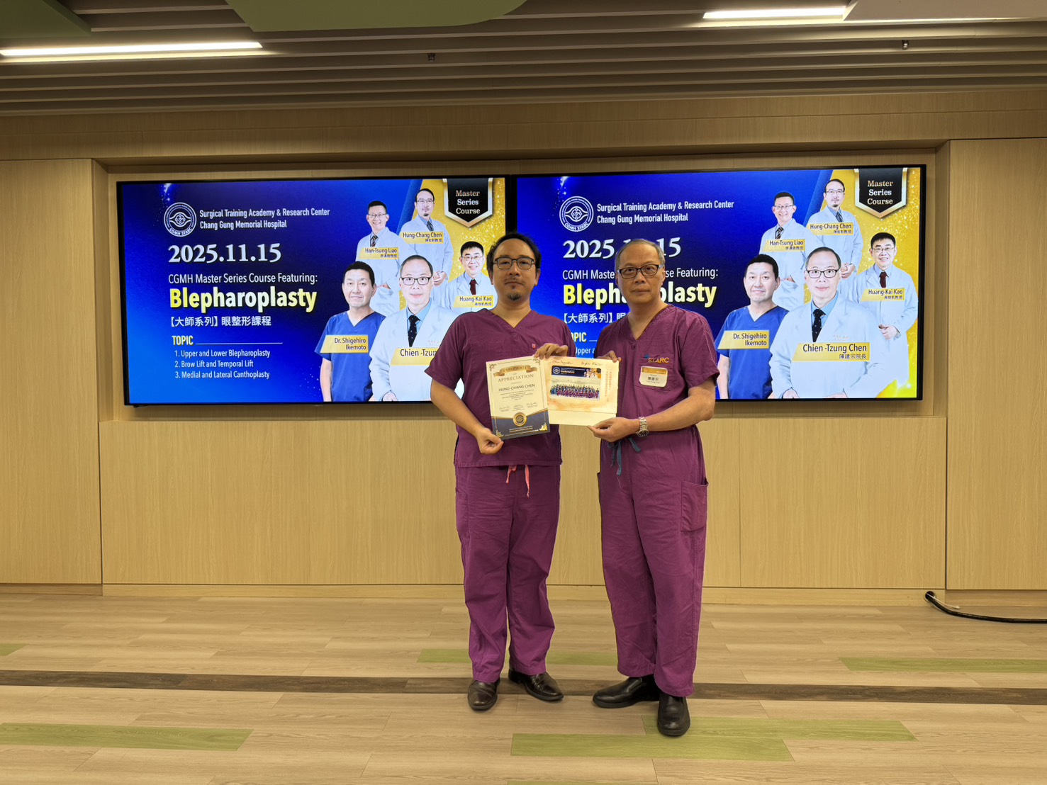 麗舍整形外科陳宏彰院長,近日榮幸受邀前往林口長庚紀念醫院「大師系列」眼整形課程擔任講師,分享多年累積之臨床實務經驗,主題聚焦於「提眉手術技巧」及「下眼瞼外翻矯正」兩大重點,與現場多位國內眼整形醫師進行深入交流,現場互動熱絡。