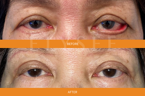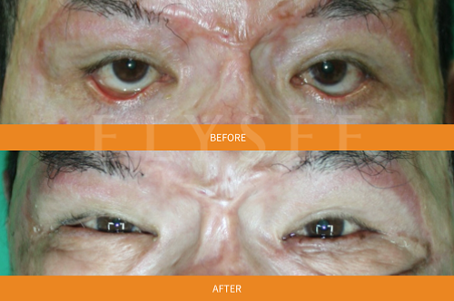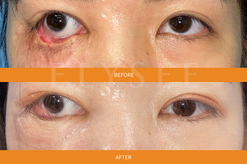 情況更嚴重的病患,例如下眼皮經燙傷或外傷後嚴重缺損,下眼皮充滿疤痕、皮膚不夠,那甚至需要植皮手術才能得到改善。