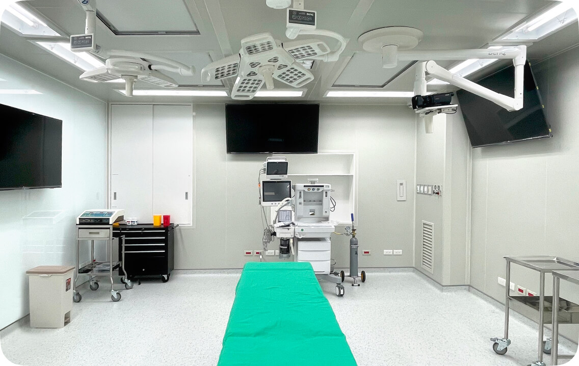 設置醫學中心級手術室:正壓手術房、HEPA無塵室、高顯色手術無影燈、高承重手術床